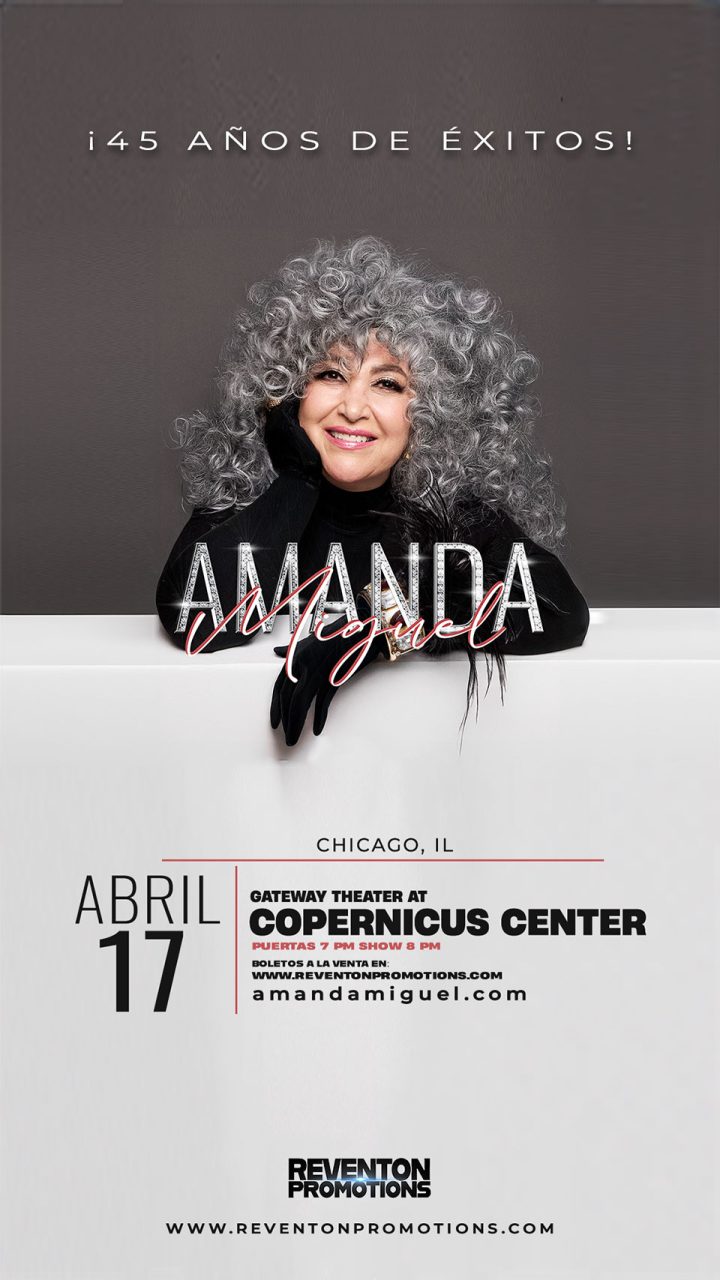 AMANDA MIGUEL 4/17/2026 – UNA SOLA PRESENTACIÓN – 45 AÑOS DE EXITOS COPERNICUS CENTER CHICAGO – COMPRA HOY MISMO – MAS INFORMACION @ www.reventonpromotions.com