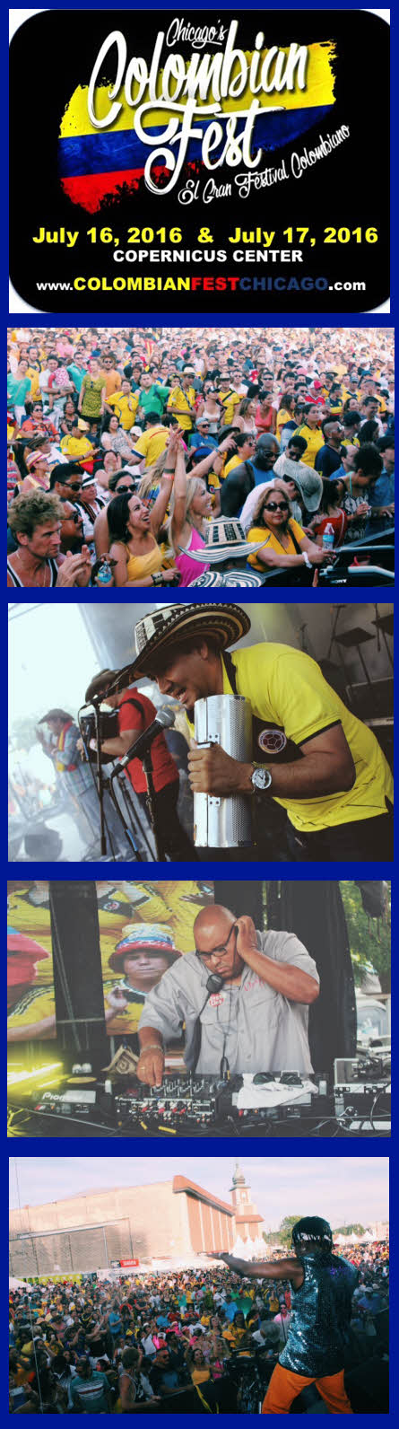 El Gran Festival Colombiano 2016 in Chicago will be held from Saturday, July 16th to Sunday, July 17th in the beautiful city of Chicago at the Copernicus Center at 5216 West Lawrence Avenue from noon to 10:00 pm daily.