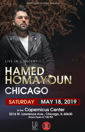 Hamed Homayoun in his first concert tour in the United States. He will perform one concert in Chicago on Saturday, May 18, 2019 at the Copernicus Center.