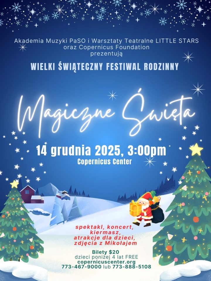 The Magic of Christmas festival is an annual event sponsored by the Copernicus Foundation to celebrate the season with our community and to share the Polish traditions of Christmas. The show includes modern and traditional music, theater and dance, the story of the first star, and the tradition of the Polish wafer (opłatek).