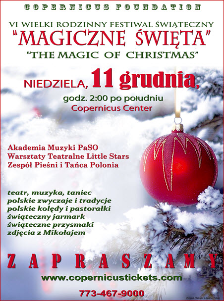 The MAGIC OF CHRISTMAS – celebration of Polish traditions, the only WIGILIA -Christmas Eve how important it is with all this 12 meals on the table, and the empty chair, star of Bethlehem etc… We’ll start with a little theatre production about kids who decide to organize Christmas Eve in their orphanage and finally they go to concert full of Christmas music, Polish folk dance, and songs. Over 200 kids and teenagers on stage, all born in USA, speaking perfect, fluent polish, and celebrating their parents’ and grandparents’ traditions.
