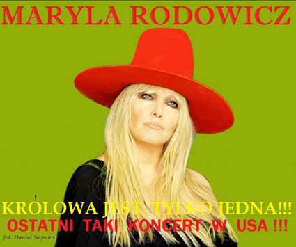 USA „Krolowa jest tylko jedna”, najpopularniejszej od ponad 50 lat Mega Gwiazdy Polskiej Piosenki. Maryla zaśpiewa piosenki premierowe z najnowszej płyty, która ukaże się już jesienią 2017 roku, a także swoje największe przeboje. Niewielu jest artystów, którzy tak łatwo i bezpretensjonalnie nawiązują świetny kontakt z widownią, którzy potrafią tak wyzwolić pozytywne emocje i naturalne, spontaniczne reakcje kilku pokoleniowej publiczności. TYLKO MARYLA!!! PRZYJDZ!!! WEŹ UDZIAŁ WE WSPÓLNEJ ZABAWIE!!!