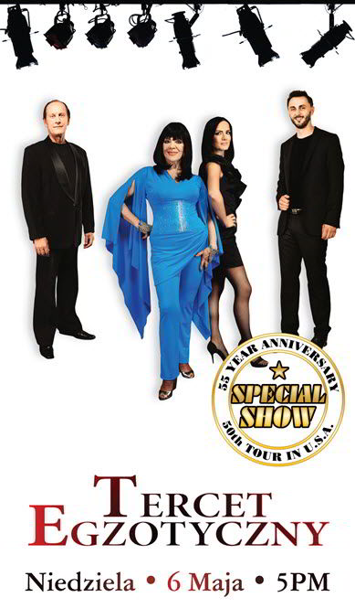 Jest to Jubileuszowa- 50 po USA trasa Tercetu Egzotycznego z okazji 55 lat istenia zespolu. Świętujemy dwie okazję w Copernicus Center w niedzielę 6 maja.