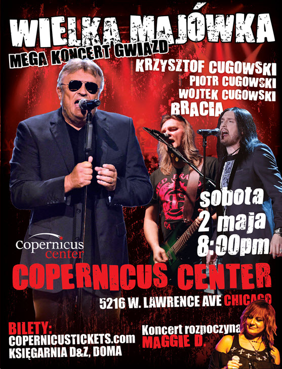 Publiczność chicagowska będzie świadkiem niezwykłego koncertu, podczas którego usłyszy utwory Budki Suflera oraz największe przeboje zespołu Bracia. Krzysztof Cugowski to najbardziej znany polski wokalista rockowy, który w 1969 roku założył zespół Budka Suflera. W ubiegłym roku Budka Suflera zakończyła swoją działalność po 40- u latach istnienia, zamykając ważny rozdział w historii polskiego rocka. Krzysztof Cugowski kontynuuje swoją muzyczną przygodę, m.in. koncertując ze swoimi synami Piotrem i Wojtkiem, którzy od 1997 roku tworzą zespół Bracia. Premierowy występ tego wyjątkowego projektu muzycznego miał miejsce 7 lutego podczas Gali 25-lecia radia RMF FM, w warszawskim Teatrze Narodowym. Można go obejrzeć poniżej.